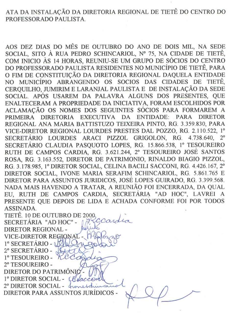 - Diretora Regional: ANA MARIA BATTISTUZZO TEIXEIRA PINTO